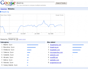 John Forsythe de Blamcast publica en su blog la lista que ofrece google trends de webs a las que la gente también visita drupal.org.